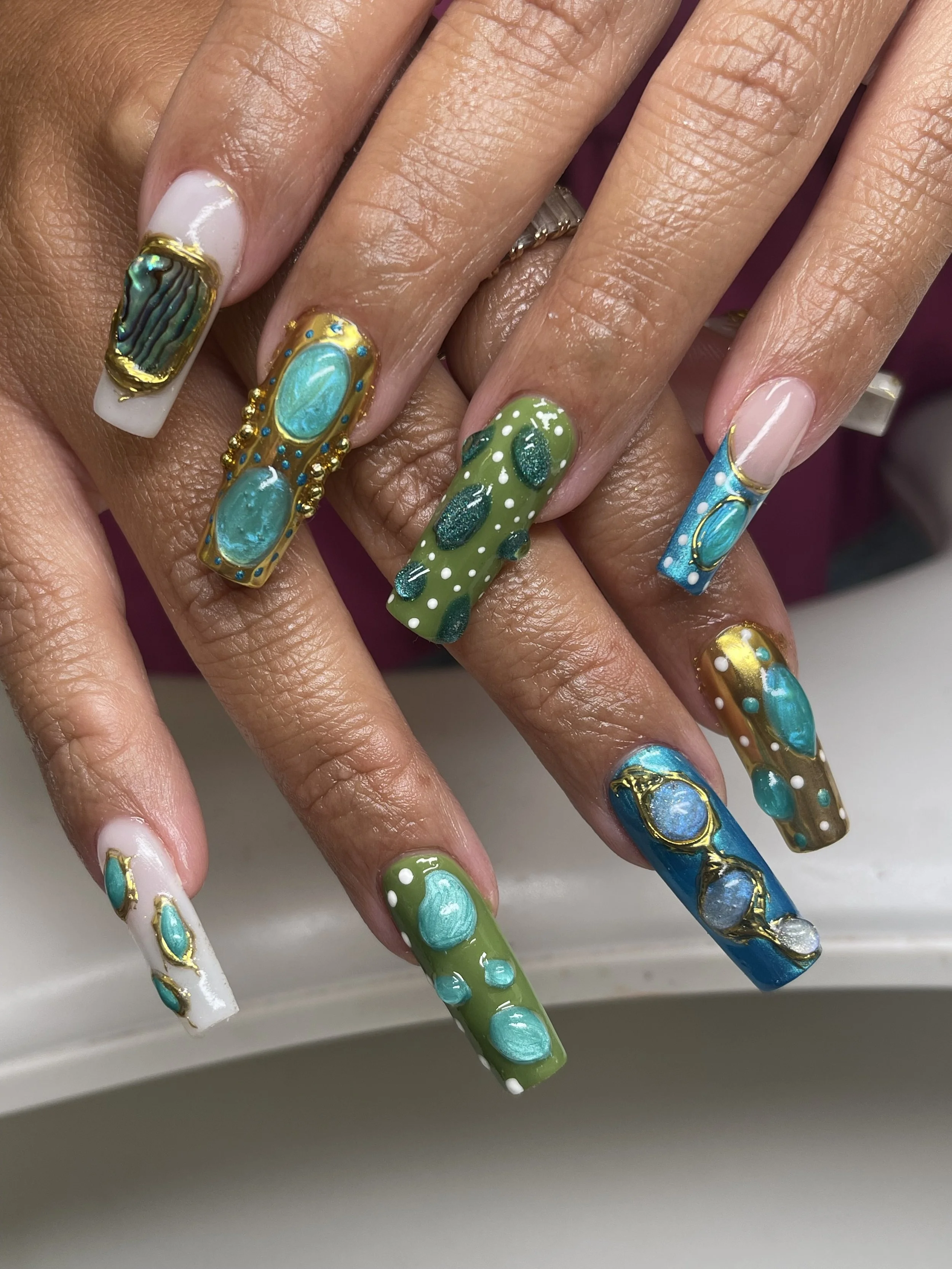 Inspired by iconic nail culture and childhood hours spent playing with press-on sets, Natalia transforms ideas into wearable art. Specializing in hand-painted lettering and custom nail charms, her work blends nostalgia, edge, and craftsmanship.